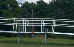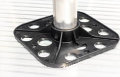 Support assemblies are used to connect two ramp sections, and include two complete legs, with footpads and post caps, a cross-arm with leg clamps, and two cross-arm clamps.